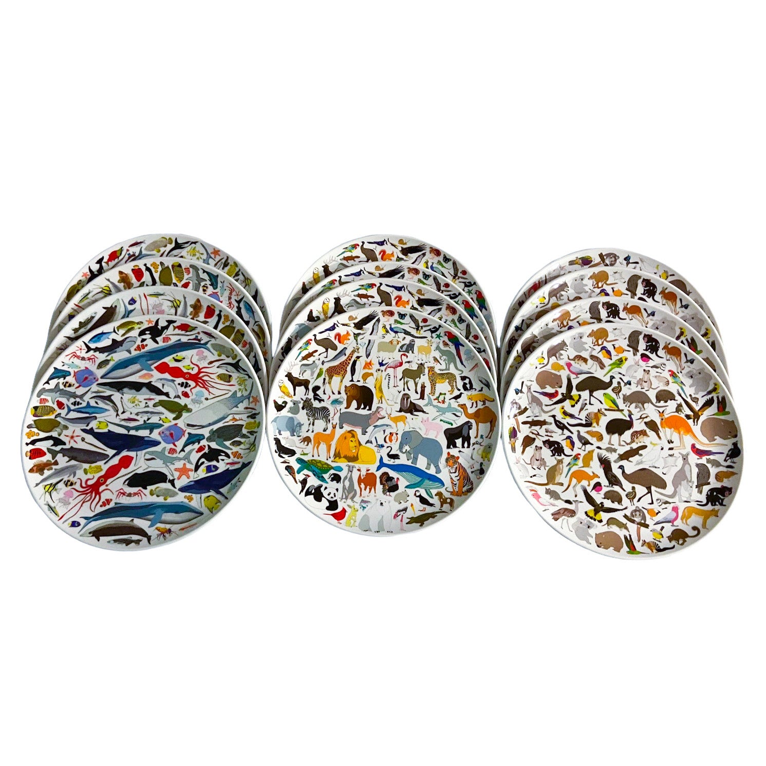 4 x 101 Animals plates featuring illustrations from Jen’s book 101 Collective Nouns.