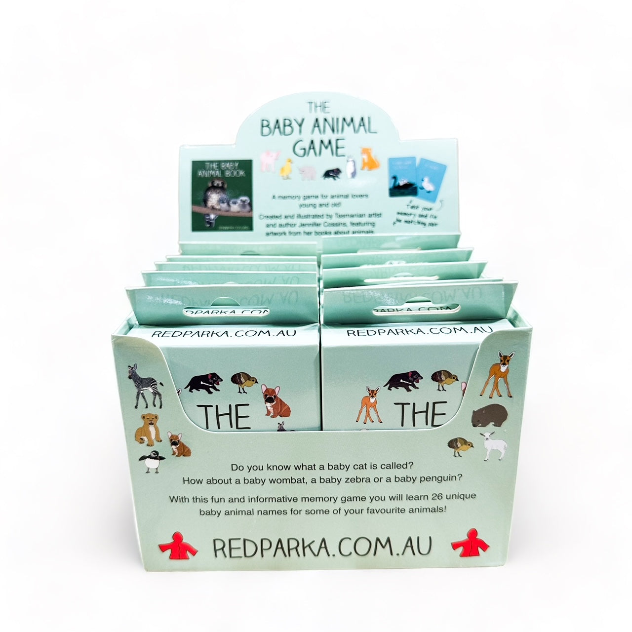 Point of sale display pack of 10 The Baby Animal Games. This is a memory game for young and old. Can you help the kitten, the fawn, the puffling and the lion cub find their families?
